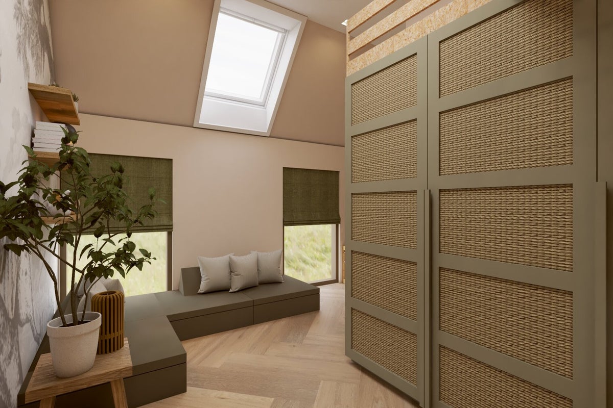 Elke kinderkamer is volledig op maat ontworpen, afgestemd op de individuele wensen en behoeften van de kinderen. Dit zorgt ervoor dat elk kind een eigen persoonlijke ruimte heeft waarin ze zich kunnen ontwikkelen en spelen. Daarnaast zijn er meerdere badkamers en toiletten aanwezig, allemaal in dezelfde stijl uitgevoerd, wat bijdraagt aan een samenhangend geheel in het ontwerp. Dit project is gerealiseerd in nauwe samenwerking met de opdrachtgevers om een woning te creëren die perfect aansluit op hun levensstijl.