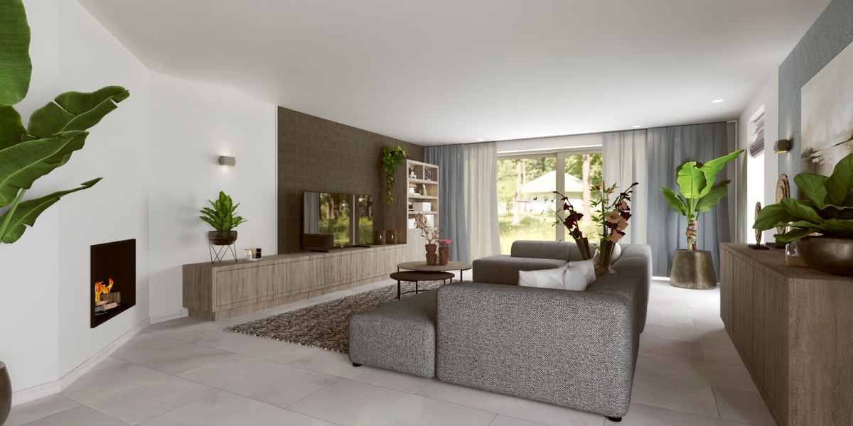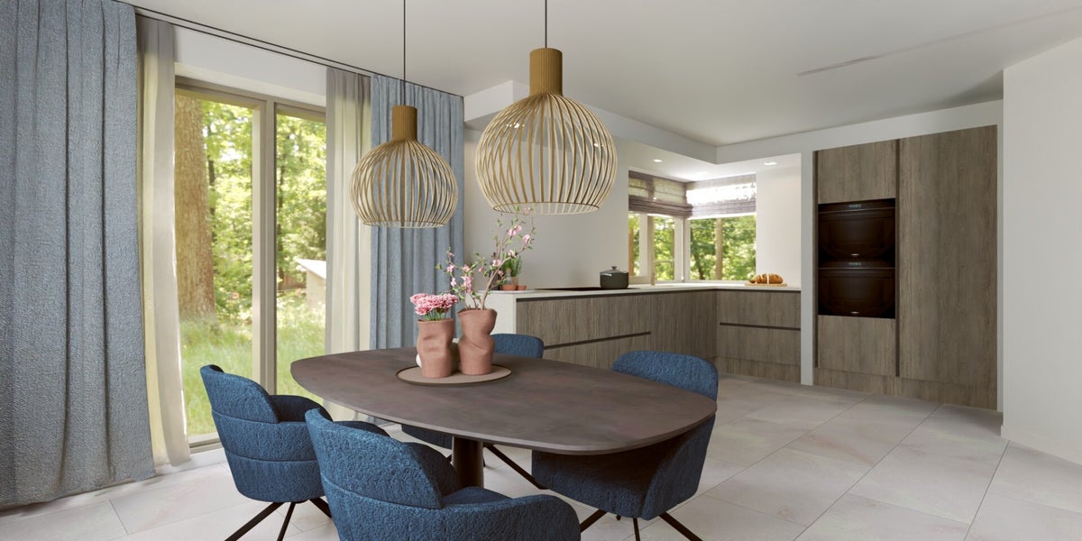 De ligging aan het Ommerbos vormde een belangrijke inspiratiebron voor dit interieurontwerp. Natuurlijke materialen, rustige tinten en een warme basis zorgen ervoor dat binnen en buiten mooi in elkaar overlopen. Het ontwerp voelt daardoor rustig, tijdloos en passend bij de bosrijke omgeving, zonder dat het saai wordt.